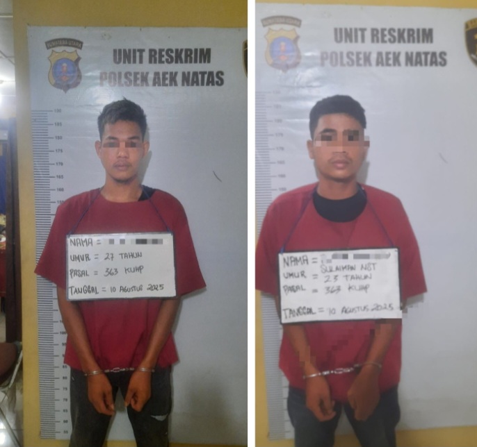 Bacaria.id, Labuhanbatu – Unit Satreskrim Polsek Aek Natas berhasil mengamankan dua orang warga Kabupaten Labuhanbatu diduga sebagai pelaku pencurian empat ekor sapi di Dusun Terang Bulan, Kecamatan Aek Natas, Kabupaten Labuhanbatu Utara, Minggu 10/8/2025 sekira pukul 03:00 WIB.