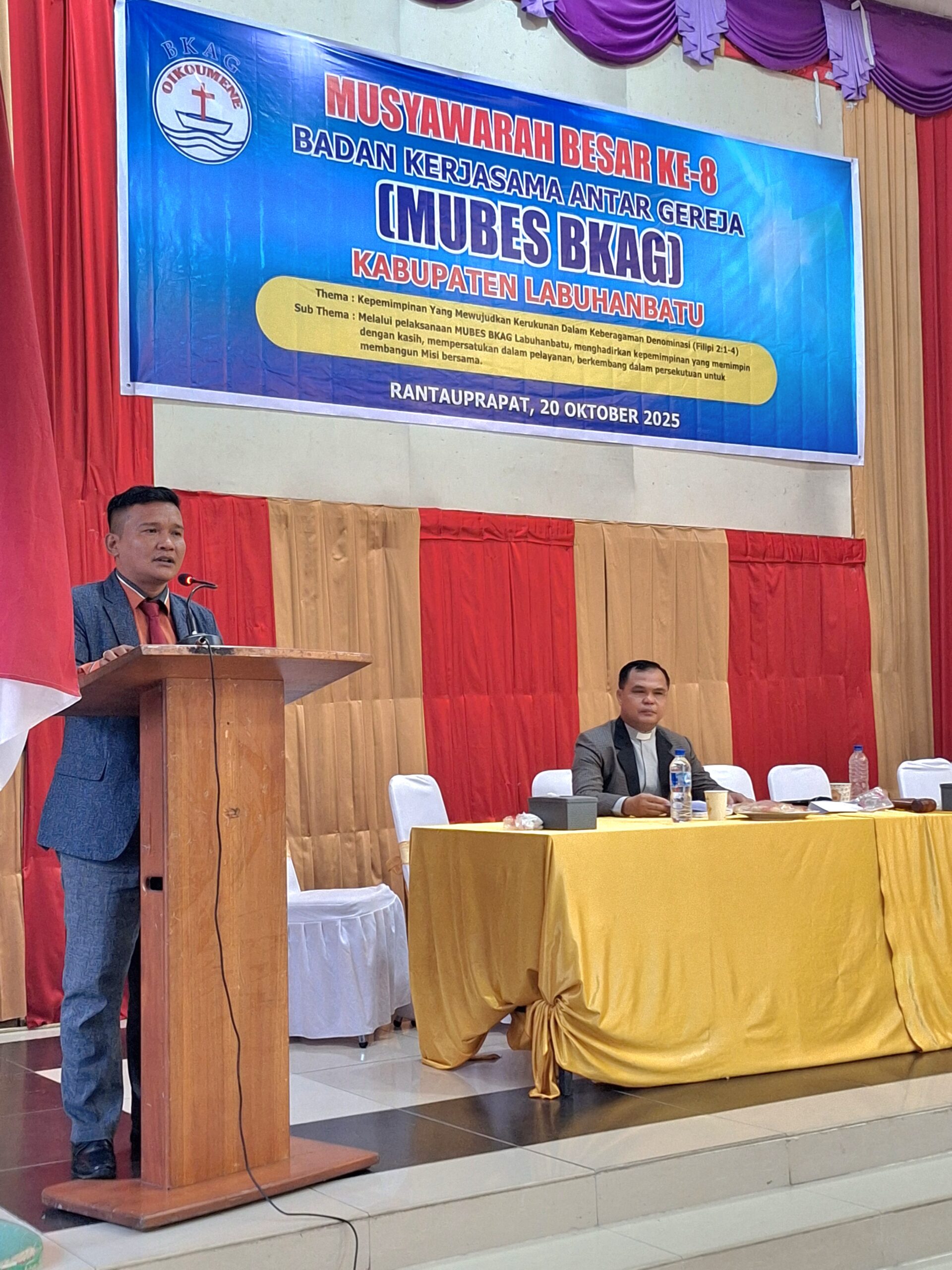 Bacaria.id, Labuhanbatu – Badan Kerjasama Antar Gereja (BKAG) Kabupaten Labuhanbatu menggelar Musyawarah Besar (Mubes) VIII di BJ. Sinurat Hall, Senin (20/10/2025), dengan tema “Kepemimpinan yang Mewujudkan Kerukunan dalam Keberagaman Denominasi” (Filipi 2:1-4).