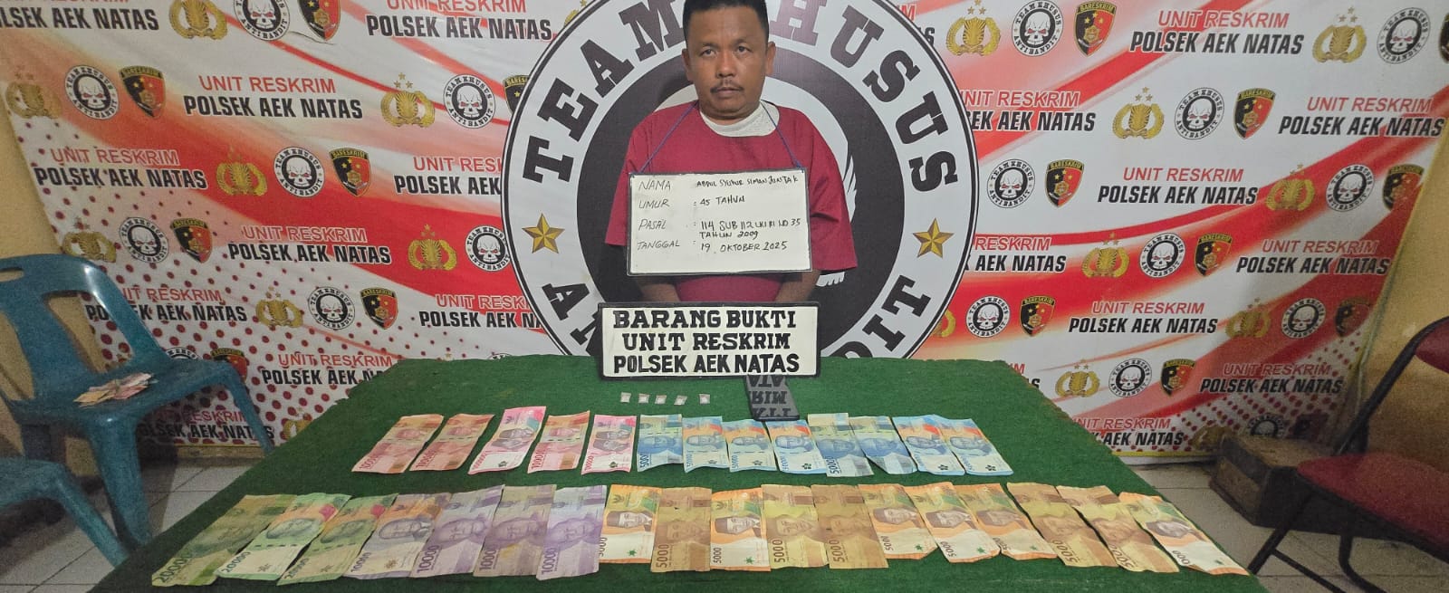 Kapolsek Aek Natas Iptu Sofyan, S.H., M.H. menjelaskan, penangkapan bermula dari informasi masyarakat yang melaporkan adanya aktivitas transaksi narkoba di warung tersebut.